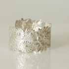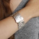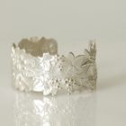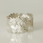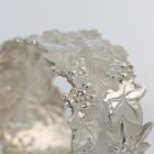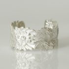Ce bracelet est composé en quatre parties: ‘Printemps’ avec des pâquerettes et myosotis, ‘Eté’ avec un dalhia positionné sur le coté du poignet, ‘Automne’ avec la vigne et ses raisins, ‘Hiver’ avec l’Edelweiss où fleurs des neiges. Une belle sculpture pour le corps!