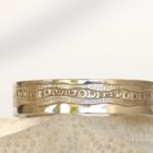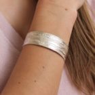 Travaillé dans une plaque d’argent 1er titre (argent plus pur que les bijoux standards fondus) les lignes, textures et motifs sont réalisés en ciselure à la main.  Les ondulations ciselées peuvent légèrement variées d’un modèle à un autre. La finition est polie. Poinçon de Maître et poinçon de garantie.
