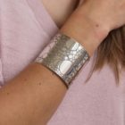Manchette en argent ciselé aux motifs de bulles stylisés.