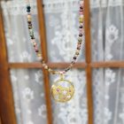 Diamètre du médaillon: 2 cm. Collier de tourmalines: 42 cm.